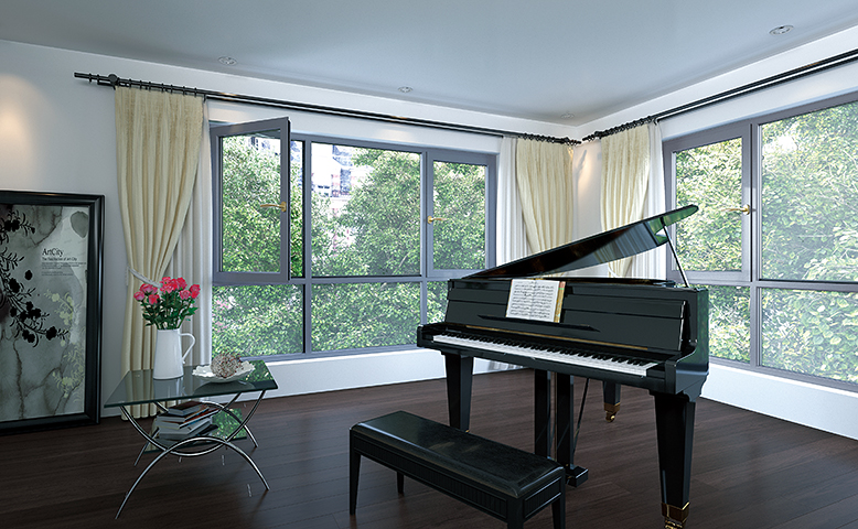 將型材根據要求通過連接件 組裝,德曼尼系統門窗采用 專利防撬連桿鉸鏈,配置高 端鎖具、德國好博執手等頂 級配件。